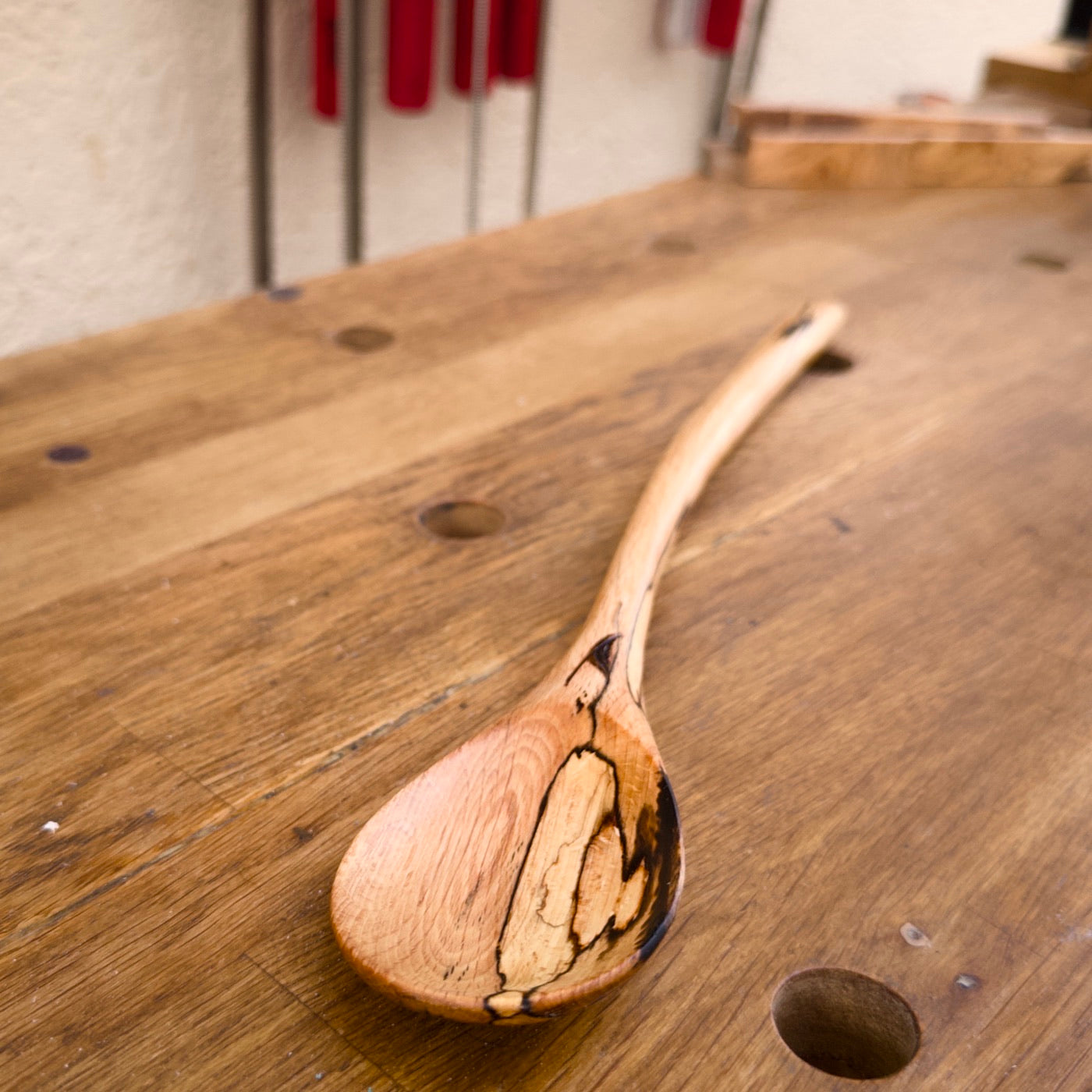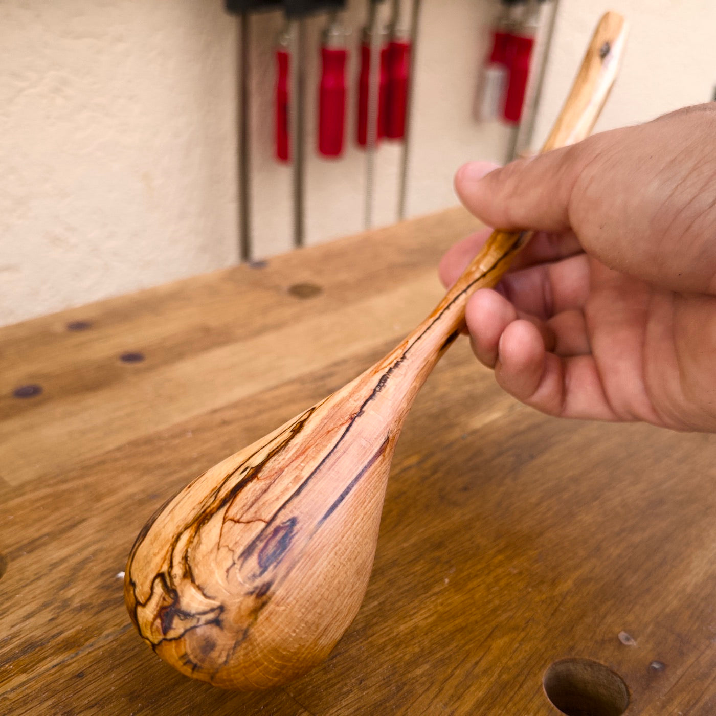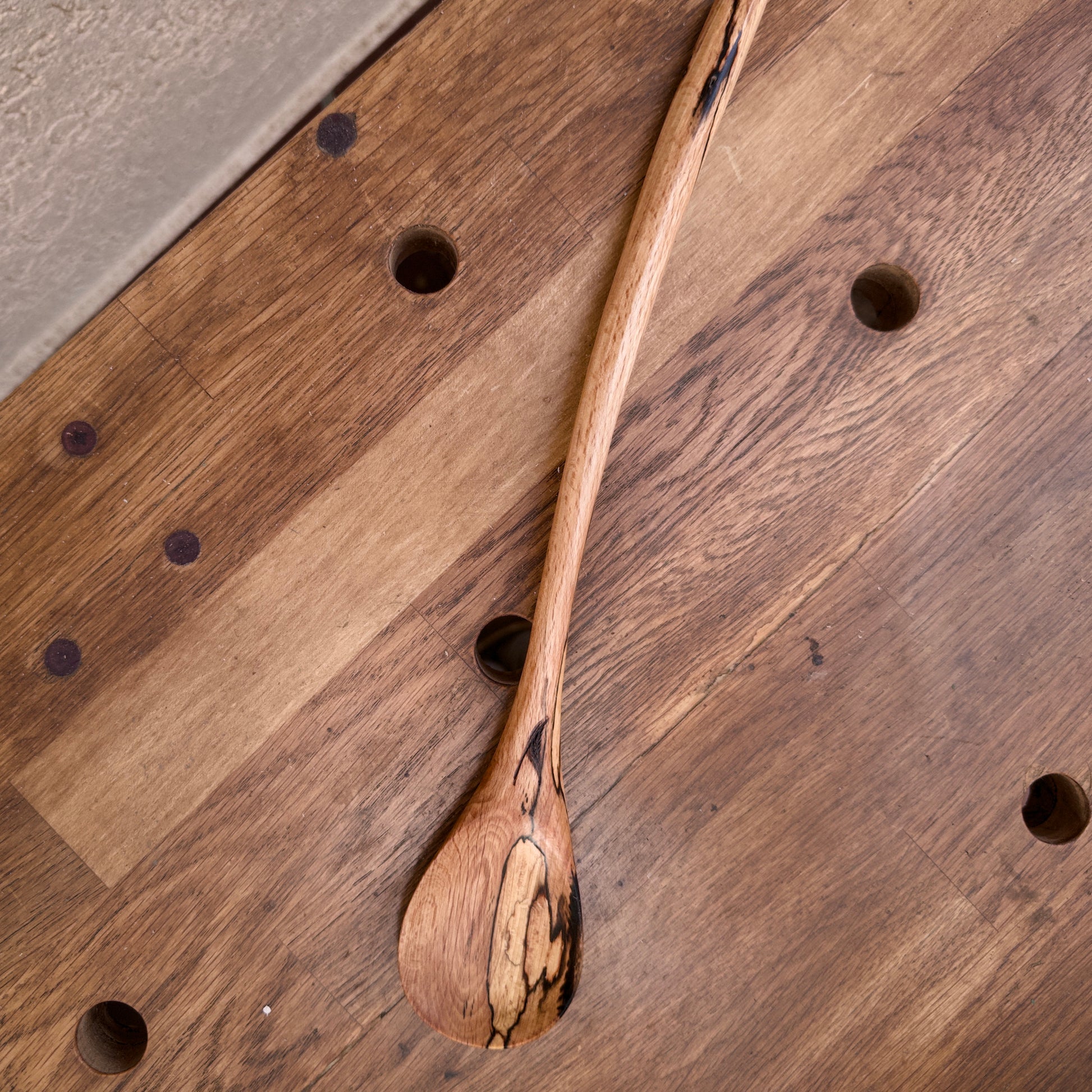 Lingură lungă pentru gătit, sculptată din lemn de fag, tratată cu ulei de tung pur și ceară de albine și carnauba pentru un strat hidrofobic natural.