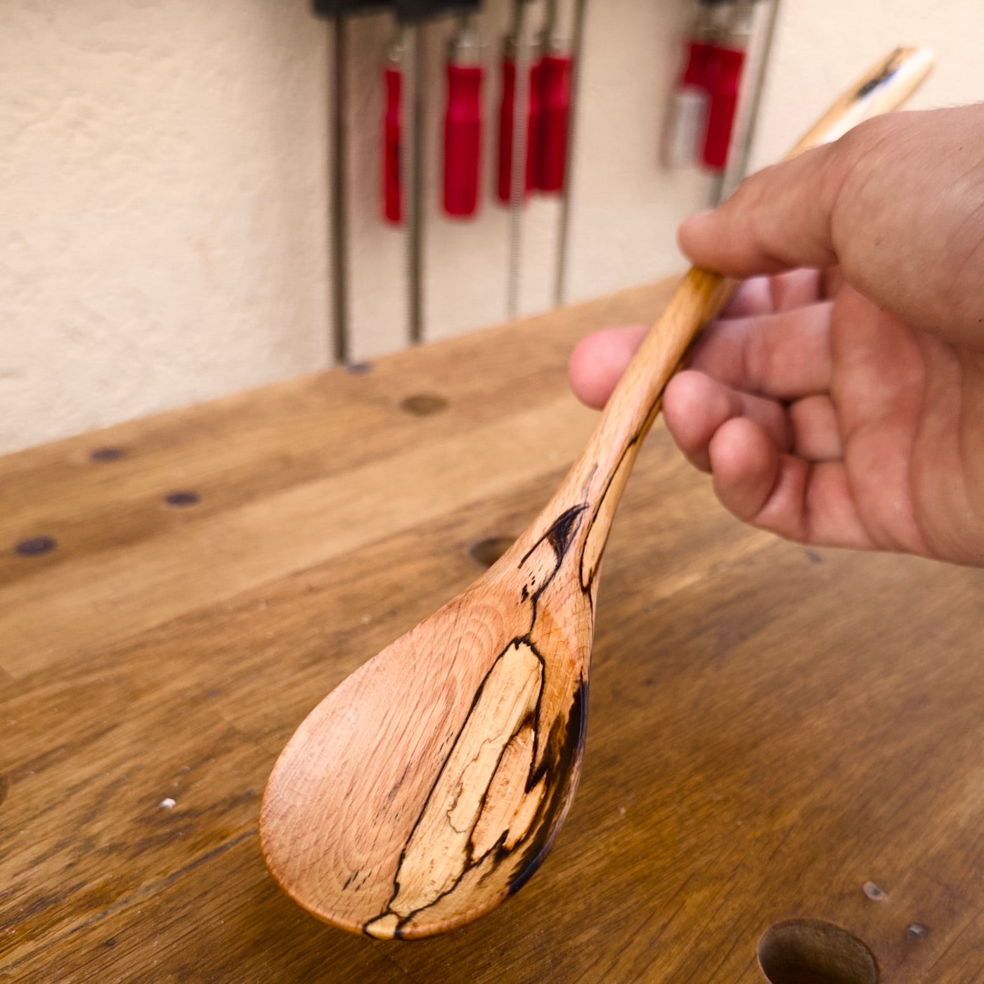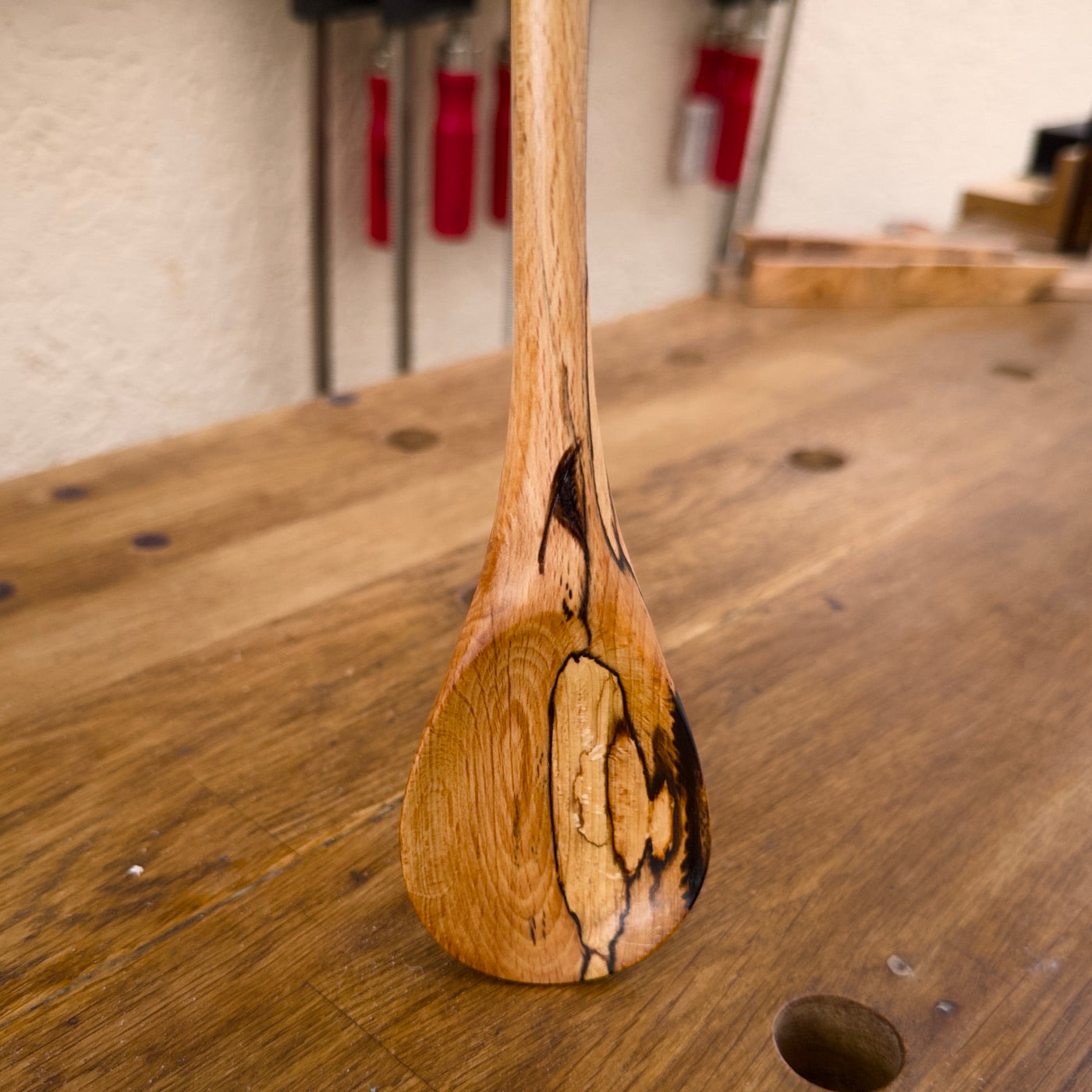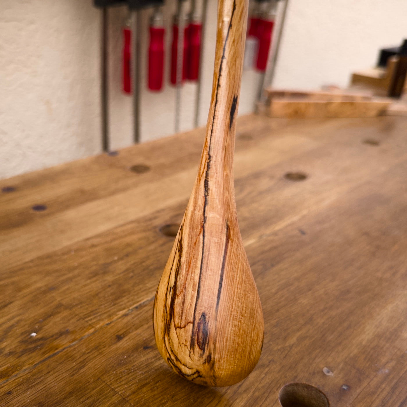 Lingură lungă pentru gătit, sculptată din lemn de fag, tratată cu ulei de tung pur și ceară de albine și carnauba pentru un strat hidrofobic natural.